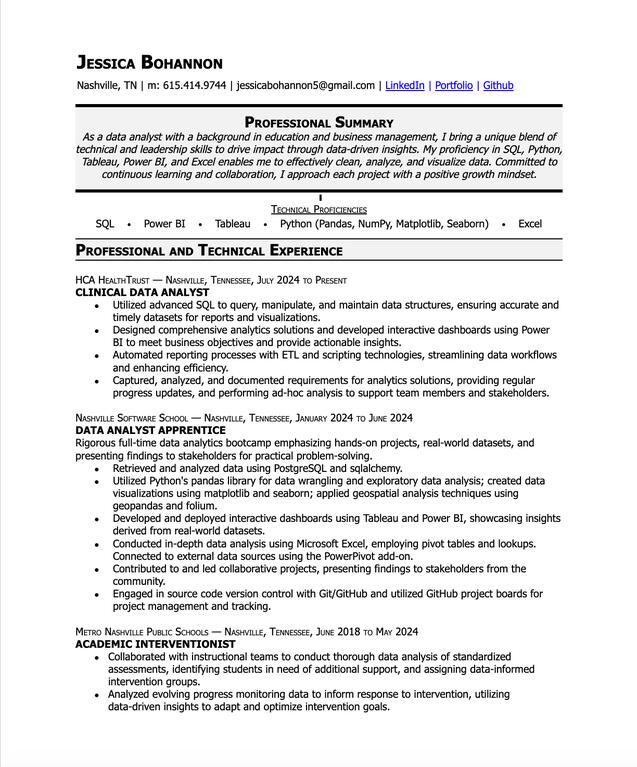 As a data analyst with a background in education and business management, I bring a unique blend of technical and leadership skills to drive impact through data-driven insights. My proficiency in SQL, Tableau, Python, and Excel enables me to effectively clean, analyze, and visualize data. Committed to continuous learning and collaboration, I approach each project with a positive growth mindset.